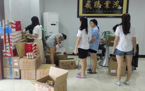 負責領取的前臺小周清點、簽名忙的不亦樂乎,這不,財務部的美女們熱心幫忙分發啦!