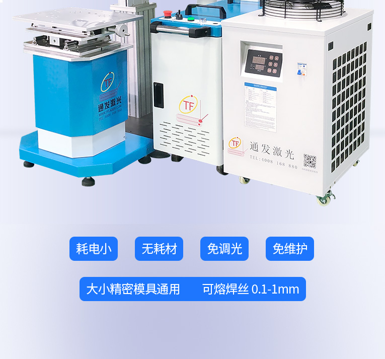 1、采用光纖激光器,反射率高,能量強(qiáng),免維護(hù),免調(diào)光,功耗少,相比傳統(tǒng) 模具焊來(lái)說(shuō),體積小,安全,穩(wěn)定性好超長(zhǎng)使用壽命。